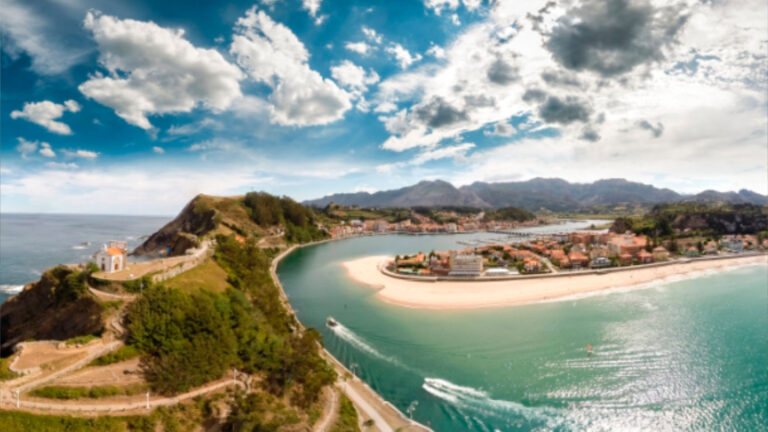 Separada del centro por el Puente del Sella, una de las más hermosas playas urbanas del Cantábrico, su extenso arenal está jalonado por una sucesión de Casonas de Indianos